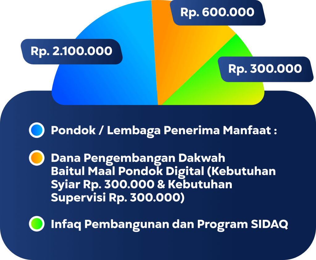 Setiap pengeluaran untuk kebutuhan Santri seperti biaya pendidikan dan makanan. Termasuk berapa yang digunakan untuk syiar dan supervisi.